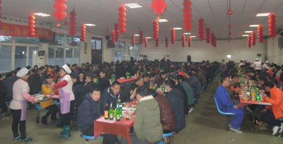 春節(jié)前夕,集團(tuán)公司行政、工會(huì)組織各事業(yè)部分工會(huì)對(duì)全體員工進(jìn)行摸底調(diào)查,最終確定留守杭州過年的有500多名外地單身員工,為了讓他們?cè)诤贾葸^一個(gè)歡樂、溫暖、祥和的新春,公司與往年一樣,為他們舉辦“同吃年夜飯,歡度除夕夜”活動(dòng)。為此,公司還在食堂掛起了大紅燈籠、彩帶等,增加了節(jié)日的喜慶氣氛。