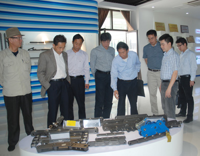 9月23日,浙江省科技咨詢中心副主任陳偉、杭州市科技咨詢中心、杭州市院士專家服務中心主任吳挺等省市區(qū)科學技術協會領導陪同寧夏回族自治區(qū)科學技術協會副主席王冰等領導到東華集團就院士工作建設情況及取得的成效進行調研。圖為副總經理袁立華、技術中心顧問陳金賢陪同陳主任一行參觀樣品。