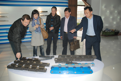 316,江干區工商聯新任主席李紅、黨組書記姚家岐、副主席張俊標、陳福臣一行到東華集團調研東華集團搬遷后的發展形勢。董事長宣碧華、副總經理張寶康熱情地接待了調研組。會上,宣董事長向調研組匯報了東華集團搬遷一年多來的發展形勢。調研組成員對宣董事長任江干區工商聯主席期間對區工商聯所作的貢獻表示感謝,對東華集團搬遷到余杭區來所取得的成績給予了肯定。圖為張寶康副總陪同調研組參觀產品陳列室。