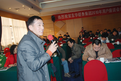首先,董事長宣碧華致歡迎辭(另刊)。他說,一年一度的東華集團用戶座談會在天豪大酒店召開。首先非常感謝我們的經(jīng)銷商、主機廠、用戶一年來對東華的大力支持,使我們度過了2009年的金融危機,也非常感謝以張總為代表的領(lǐng)導(dǎo)班子兢兢業(yè)業(yè),一年來的辛勤勞動;同時感謝戰(zhàn)斗在銷售線上的業(yè)務(wù)員的辛勤工作,取得好的銷售業(yè)績。