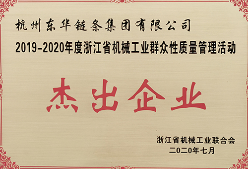 ? 東華推薦的成果在發布會上大放異彩,檢測公司奮斗者QC小組的《降低C2082H加長銷斷裂不良率》、汽車鏈事業部汽車鏈QC小組的《降低標記片錯裝不良率》、傳動鏈事業部自強QC小組《降低12AH過渡鏈節裝配干涉不良率》榮獲浙江省機械工業優秀質量管理小組一等獎;扶梯鏈工程鏈事業部扶梯鏈QC小組《提高鏈板光亮帶合格率》、輸送鏈事業部探索者QC小組的《降低P69F6GKOR鏈條扭曲不良率》、盾牌事業部踏浪者QC小組《降低P50.8鏈條鉚頭質量不良率》榮獲二等獎。東華鏈條集團被授予2019-2020年度浙江省機械工業群眾性質量管理活動“杰出企業”稱號,公司副總經理廖杭州被授予“優秀工作者”稱號。