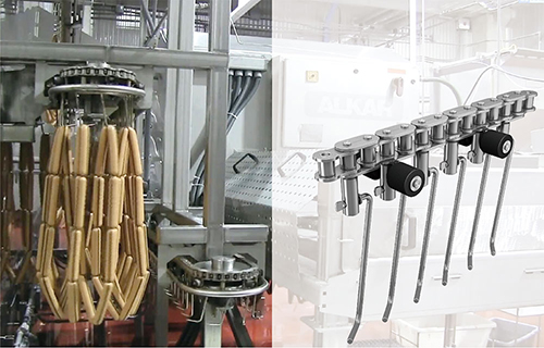 ? 食品行業主要產品有滾子鏈、長節距輸送鏈條、不銹鋼鏈條、各種表面特殊處理的專用鏈條等。廣泛應用于各類食品加工機械,如肉類生產線、制面機械、制糖機械、紫菜加工設備、瓜子加工設備、香腸加工設備、乳業灌裝設備、冰淇淋生產設備等。東華根據不同的工況,采用優化設計、特殊工藝,選用優質合金鋼、不銹鋼等材質,提高了鏈條的耐腐蝕、耐磨損性能,滿足各類設備的清潔生產、可靠使用的要求。