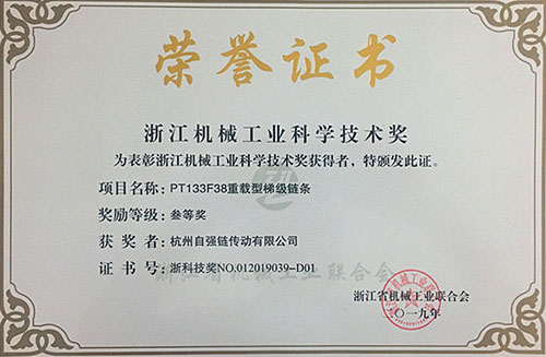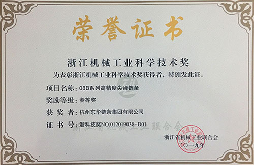 這兩項鏈條產品均為通過省級工業新產品驗收、經專家會議鑒定為中國鏈傳動行業領先水平的高端產品,為浙江省優秀工業產品,擁有“浙江精品”標志的自主品牌產品。