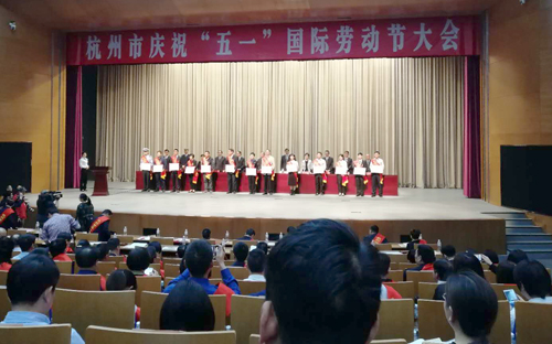4月26日,杭州市慶?!拔逡弧眹H勞動節大會在杭州市職工文化中心舉行,市人大常委會副主任、市總工會主席鄭榮勝、市“五一”勞動獎章(獎狀)獲得者、各級工會干部和職工代表500余人參加會議。東華員工徐長明被授予杭州市“五一”勞動獎章。