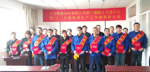 3月22日,在雄壯的國歌聲中,東華鏈條興化公司隆重召開第一屆職工(工會(huì))代表大會(huì)暨2017年度先進(jìn)表彰大會(huì)。集團(tuán)副總經(jīng)理袁立華、公司法定代表蔣錫林、公司工會(huì)主席汪昌宏、公司副總經(jīng)理邱德方、劉冬根、傳動(dòng)鏈?zhǔn)聵I(yè)部總經(jīng)理?xiàng)钚∮录捌渌袑印⒏鞣止?huì)主席、各崗位標(biāo)兵、先進(jìn)代表、職工(工會(huì))代表等60余人參加大會(huì)。