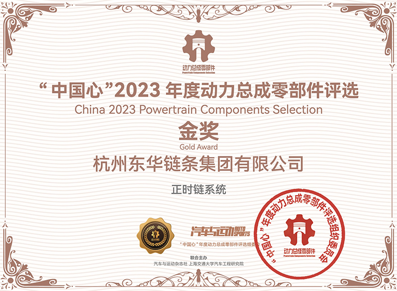 10月27日,“中國(guó)心”2023年度動(dòng)力總成零部件評(píng)選在揚(yáng)州市拉開(kāi)帷幕。東華鏈條集團(tuán)汽車(chē)鏈?zhǔn)聵I(yè)部總經(jīng)理邢建恒、營(yíng)銷(xiāo)處處長(zhǎng)汪恭兵攜東華最新汽車(chē)正時(shí)鏈系統(tǒng)解決方案的CL04DF24-2x3W(132L)正時(shí)鏈系統(tǒng)、CL05DF2(a)4-2x4W(130L)正時(shí)鏈系統(tǒng)、CL04DF26-4x4W(174L)正時(shí)鏈正時(shí)系統(tǒng)參評(píng),這三套正時(shí)系統(tǒng)產(chǎn)品已大批量配套國(guó)內(nèi)主流汽車(chē)發(fā)動(dòng)機(jī)。經(jīng)過(guò)專(zhuān)家組現(xiàn)場(chǎng)評(píng)審,2023年度動(dòng)力總成零部件共評(píng)出六名金獎(jiǎng)和四名優(yōu)秀獎(jiǎng)。東華參選的“正時(shí)鏈系統(tǒng)”獲得“中國(guó)心”2023年度動(dòng)力總成零部件金獎(jiǎng)。獲獎(jiǎng)理由為東華鏈條具備完全自主正向系統(tǒng)設(shè)計(jì)、仿真分析以及系統(tǒng)動(dòng)態(tài)測(cè)試能力,其研發(fā)的輕量化、低摩擦、高耐磨、高疲勞鏈系統(tǒng)產(chǎn)品在國(guó)內(nèi)汽車(chē)主機(jī)市場(chǎng)占有率達(dá)到22%。創(chuàng)新的銷(xiāo)軸表面滲釩專(zhuān)利技術(shù)廣泛應(yīng)用于最新混動(dòng)專(zhuān)用發(fā)動(dòng)機(jī)、渦輪增壓發(fā)動(dòng)機(jī)、柴油發(fā)動(dòng)機(jī)和甲醛發(fā)動(dòng)機(jī)。