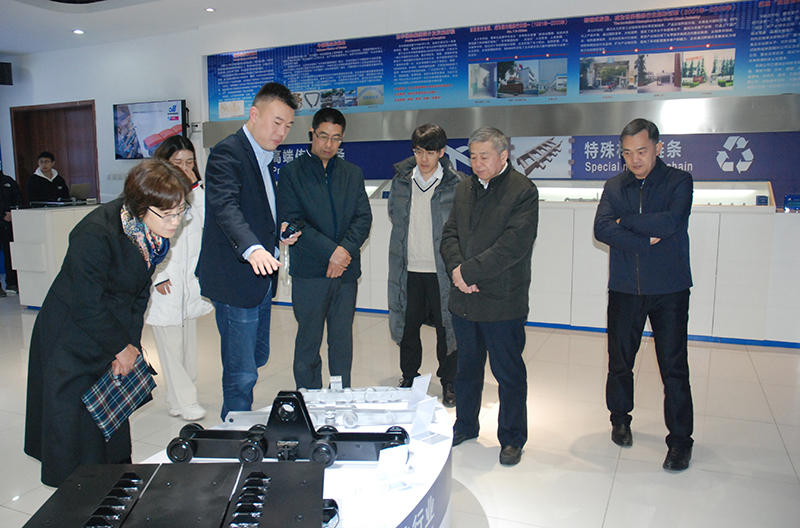 在公司展廳,苗長興等領導一行觀看了企業宣傳片,詢問了鏈傳動行業及企業發展情況,董事長宣成向大家一一進行了回答介紹。同時介紹了東華創新研發、智能制造、全球銷售等發展情況,重點介紹了工業鏈條配套主機裝備的發展情況,各細分市場領域冠軍產品和特色產品的應用情況等。
