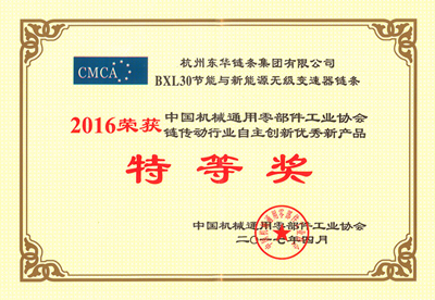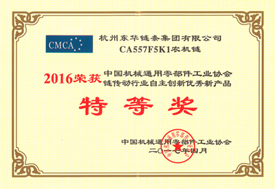 中國機械通用零部件工業協會自2004年來在全行業開展了自主創新優秀新產品獎的評選活動,東華集團連續13年每年都有高端產品獲獎,累計已獲得行業自主創新優秀新產品獎45項、其中特等獎23項。2016年度的獲獎項目再創新高,這些產品既充分展示了東華集團科技創新取得的豐碩成果,也彰顯了公司在鏈傳動行業的標桿地位。