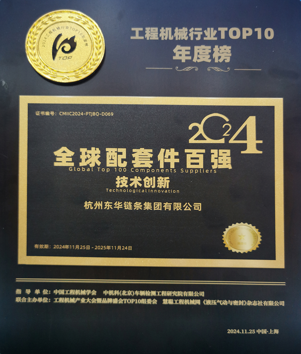 會上,東華獲評“2024工程機械行業(yè)TOP10全球配套件百強技術創(chuàng)新”獎。東華鏈條集團副總經理楊小勇代表企業(yè)參加會議并上臺領獎。