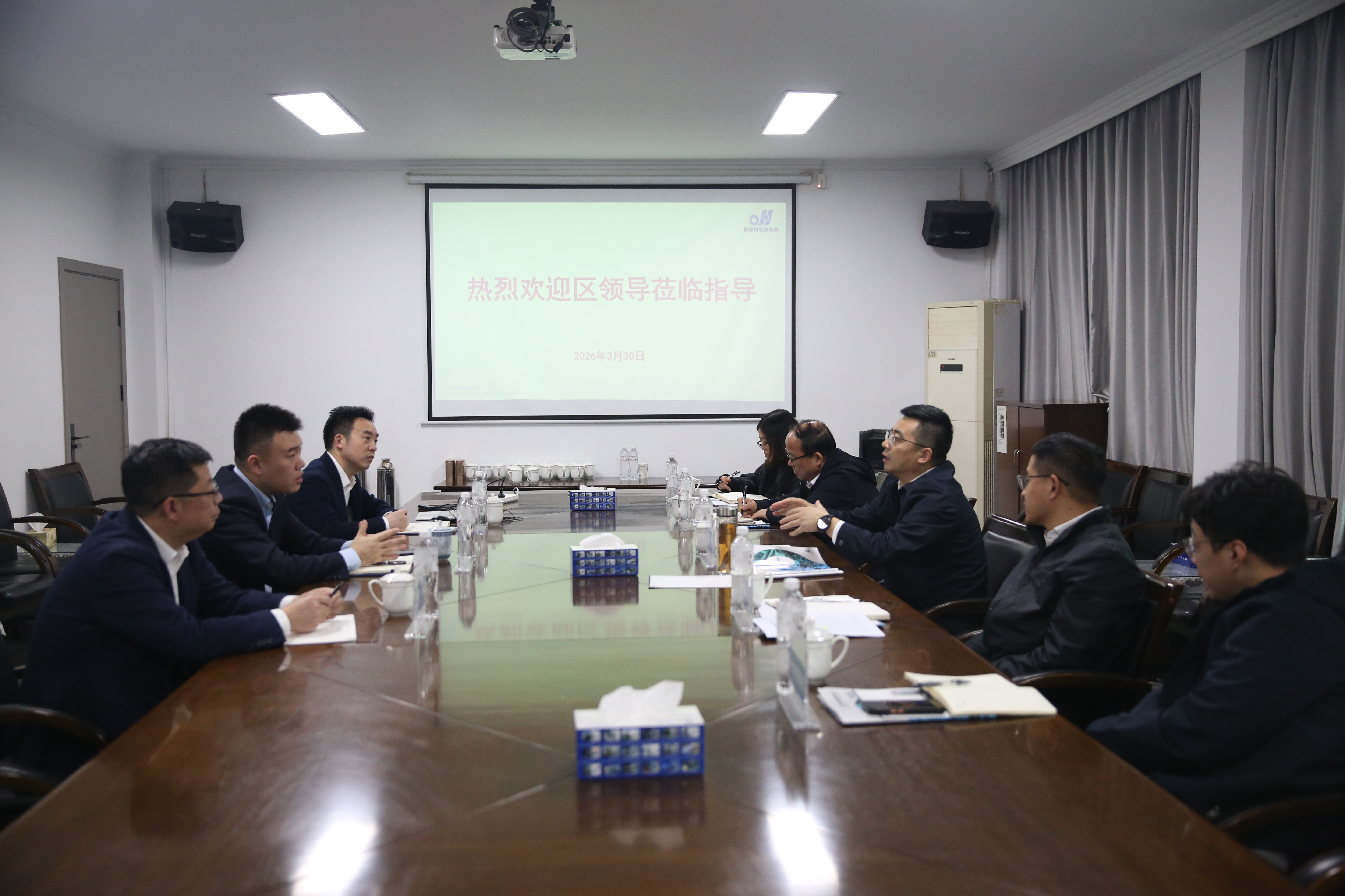 近日,臨平區委副書記、區長潘渭一行赴東華鏈條開展專題調研,深入了解企業經營情況和未來發展規劃,副區長胡俊、經開區主任卞吉坤和相關部門負責人陪同調研。集團董事長宣成、副總經理廖杭州等陪同接待。