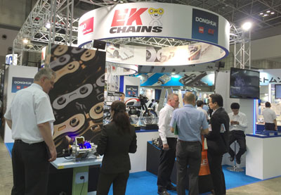 本次展會,東華鏈條集團積累了前幾次參展的經(jīng)驗,不僅展出了各種常規(guī)標(biāo)準(zhǔn)鏈,還分別展出了三家公司的優(yōu)勢產(chǎn)品,如:東華分動箱鏈條、日本EK公司最新研發(fā)的3D摩鏈、德國KOBO公司生產(chǎn)的扶梯鏈、汽車鏈條等。展會還特別展示了裝有分動箱鏈條的分動箱裝置及裝有日本EK公司生產(chǎn)的摩鏈的TRIUMPH摩托車,吸引了大量各國參展客戶的觀摩與青睞,這也預(yù)示著東華鏈條正朝著高、精、尖鏈傳動方向發(fā)展。東華鏈傳動產(chǎn)品的不斷創(chuàng)新發(fā)展,進一步展示了東華鏈條作為中國鏈傳動行業(yè)領(lǐng)頭羊的形象。